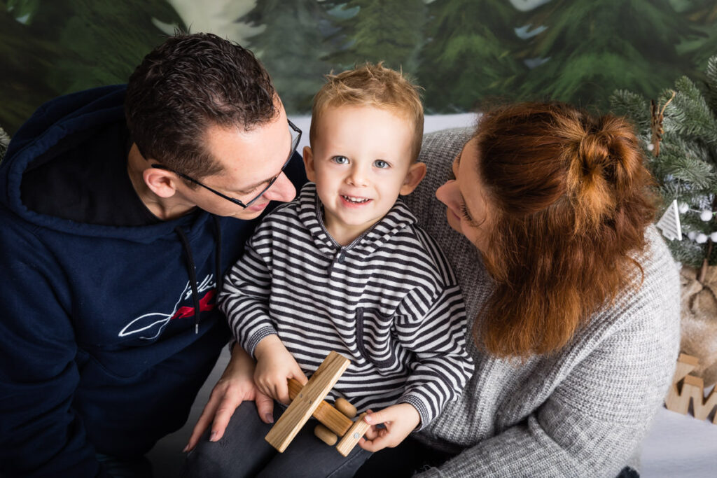 Familienbilder im Fotostudio in Essen-Frintrop mit weihnachtlichem Fotoset — Fotos für Eltern mit Kinder.
